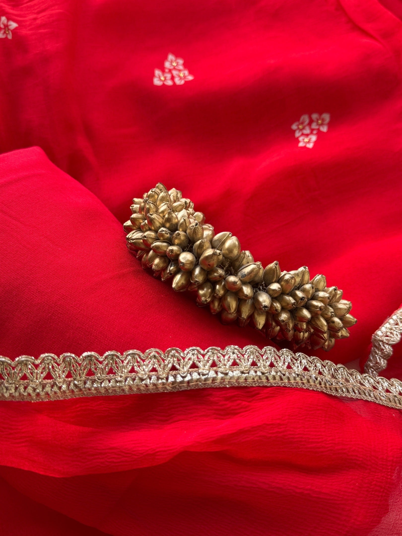 Celebrate the elegance of tradition this Karwa Chauth in our red hand-embroidered suit set!! Crafted with love, this handcrafted ensemble reflects timeless artistry and the grace of Indian ethnic wear. Perfect for festive evenings, rituals, and creating memories that shine forever.