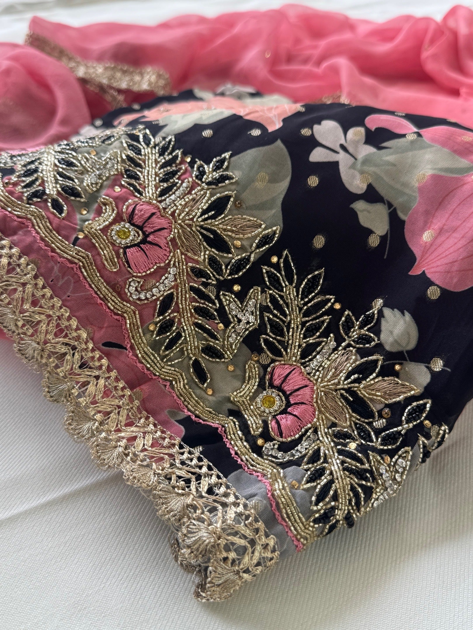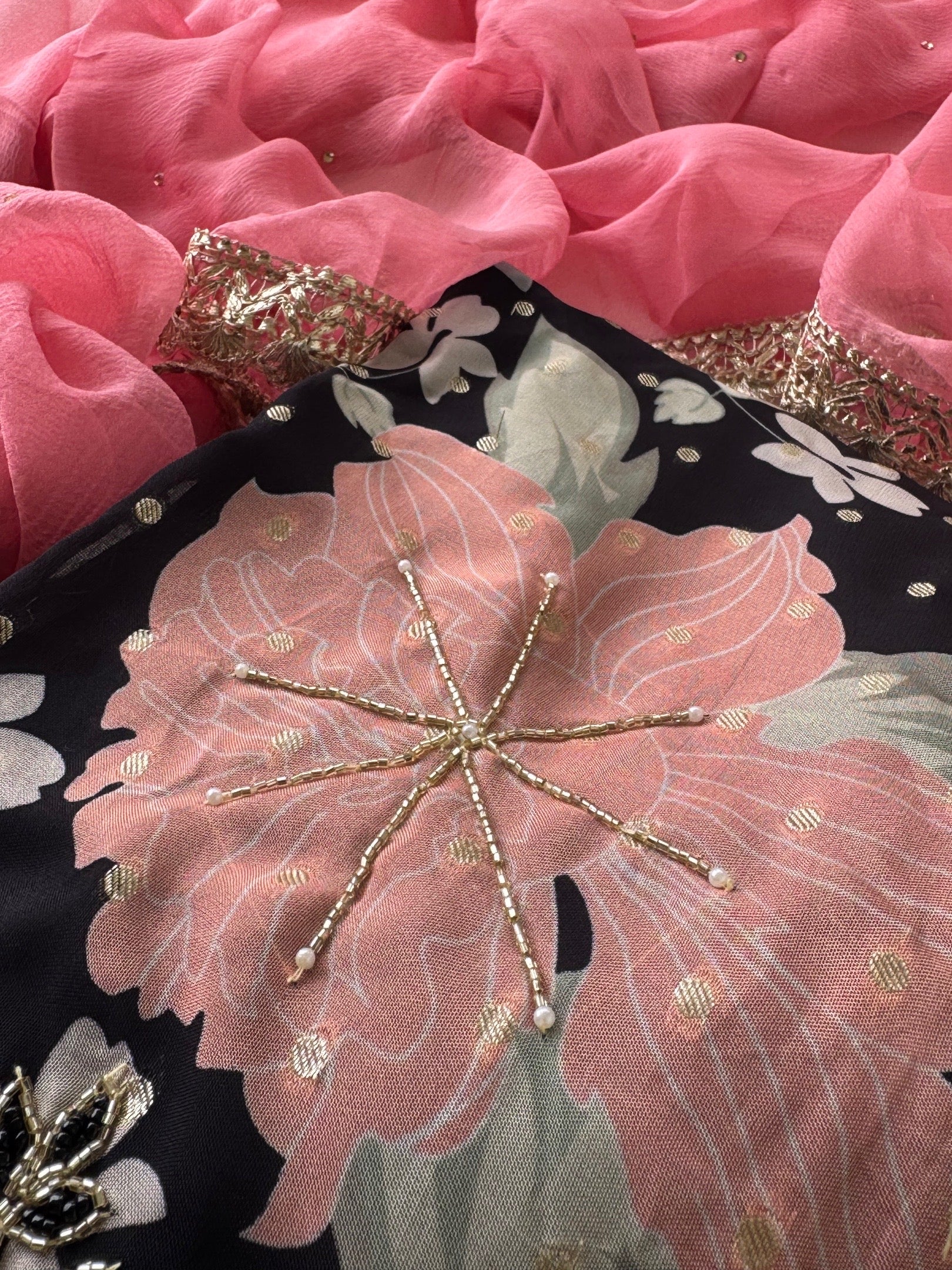 Embrace effortless elegance with our Hand-Embroidered Printed Suit Set — a timeless blend of tradition and modern grace. Featuring delicate floral prints, intricate zari embroidery, and a soft, flowing chiffon dupatta, this ensemble is designed for both festive celebrations and everyday luxury. Whether you're dressing up for a special occasion or elevating your daily style, this suit set offers unmatched comfort and refined charm.